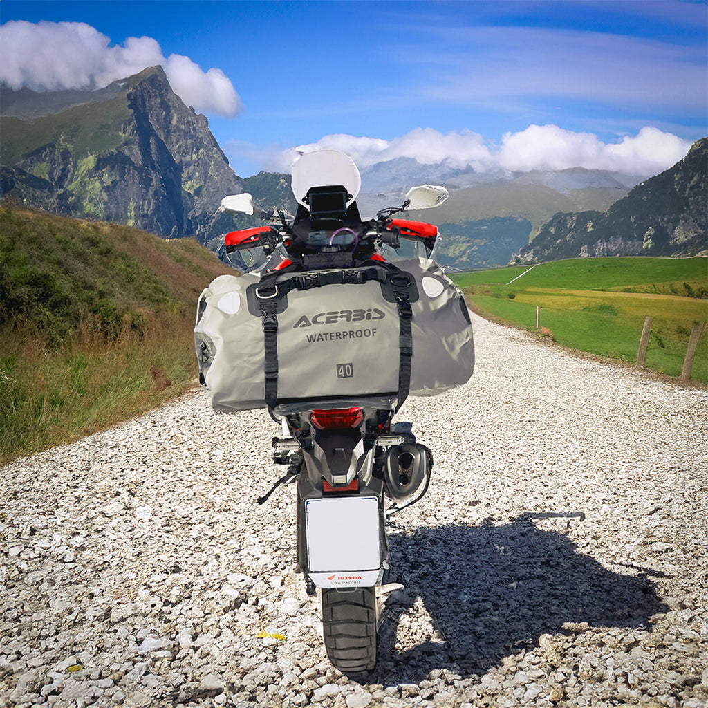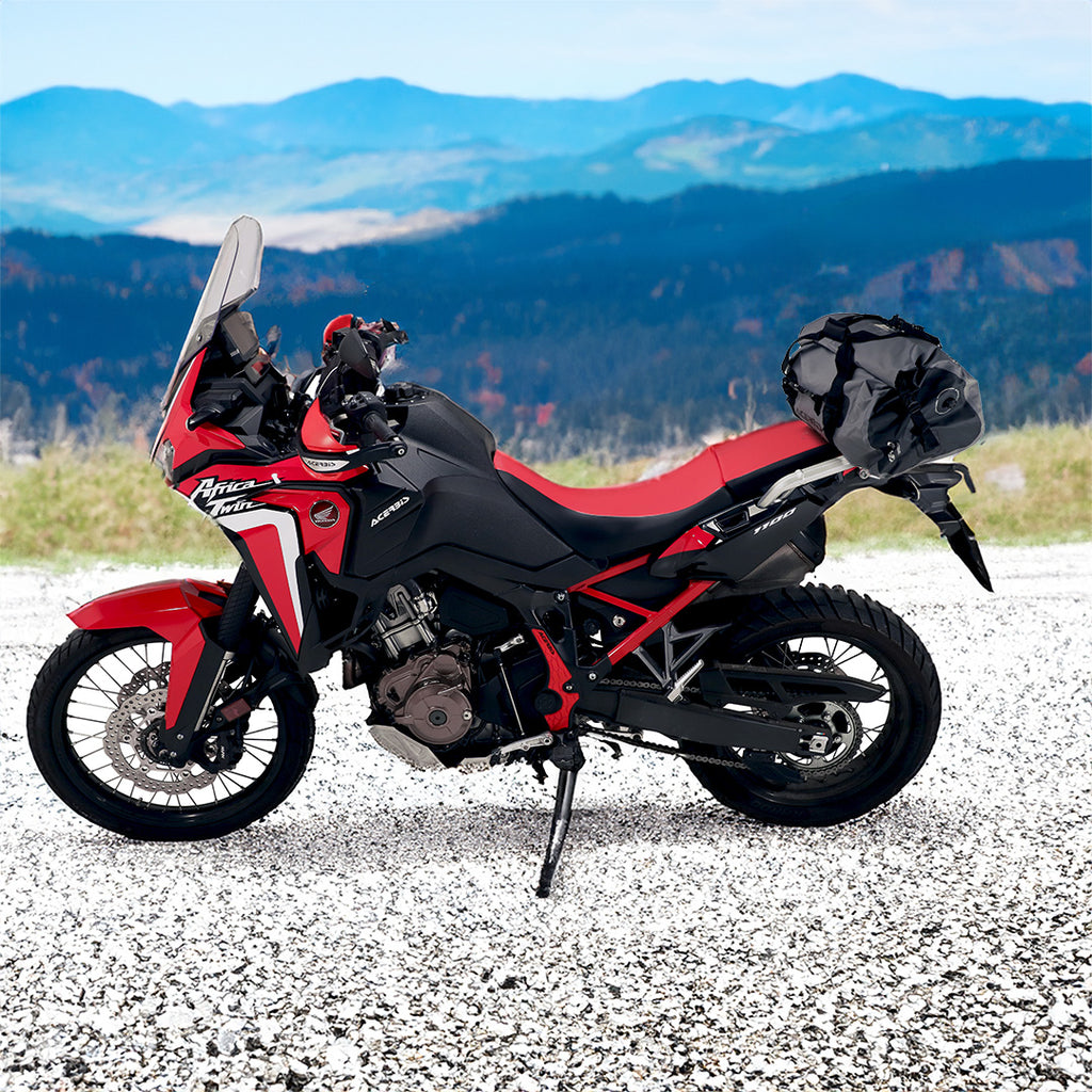 Large waterproof bag that is ideal for adventuring motorcyclists.