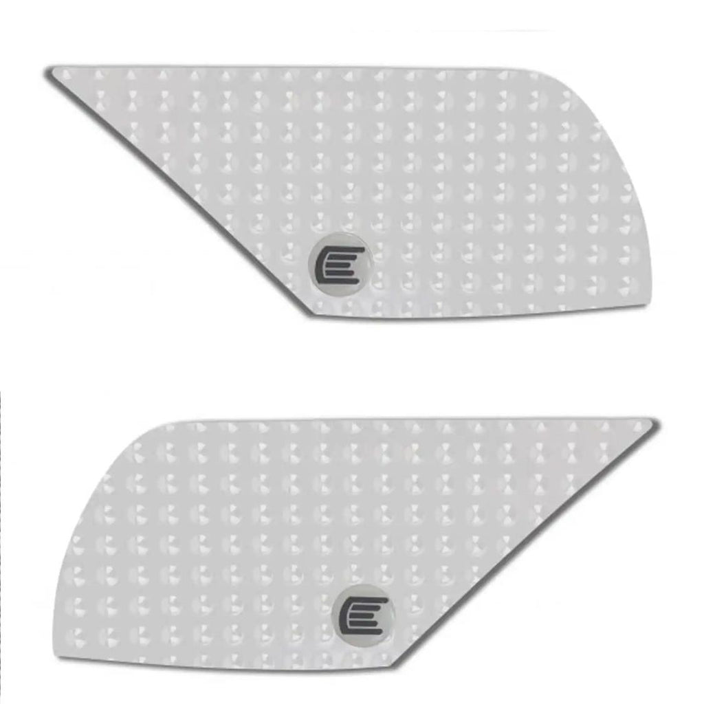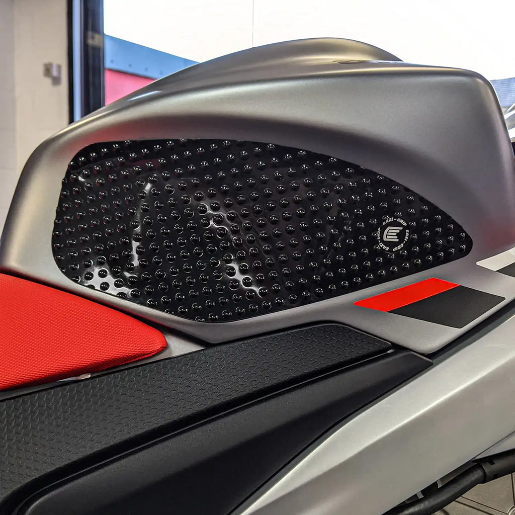 The ‘Evo’ series tank grip features pronounced hemispherical traction domes. Ideal for riders who want that added level of confidence by being able to feel the grip through their leathers. Available in Black and Clear.