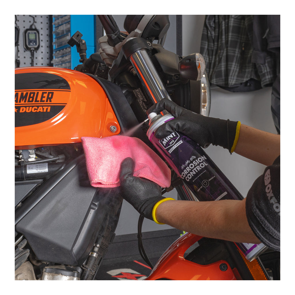 Mint Anti Corrosion is designed to protect your bike from existing and new corrosion. This product is easy to apply, and once used it forms a thin film that creates a protective barrier against moisture, salt and other environmental elements that can cause rust. Superior protection your pride and joy deserve.